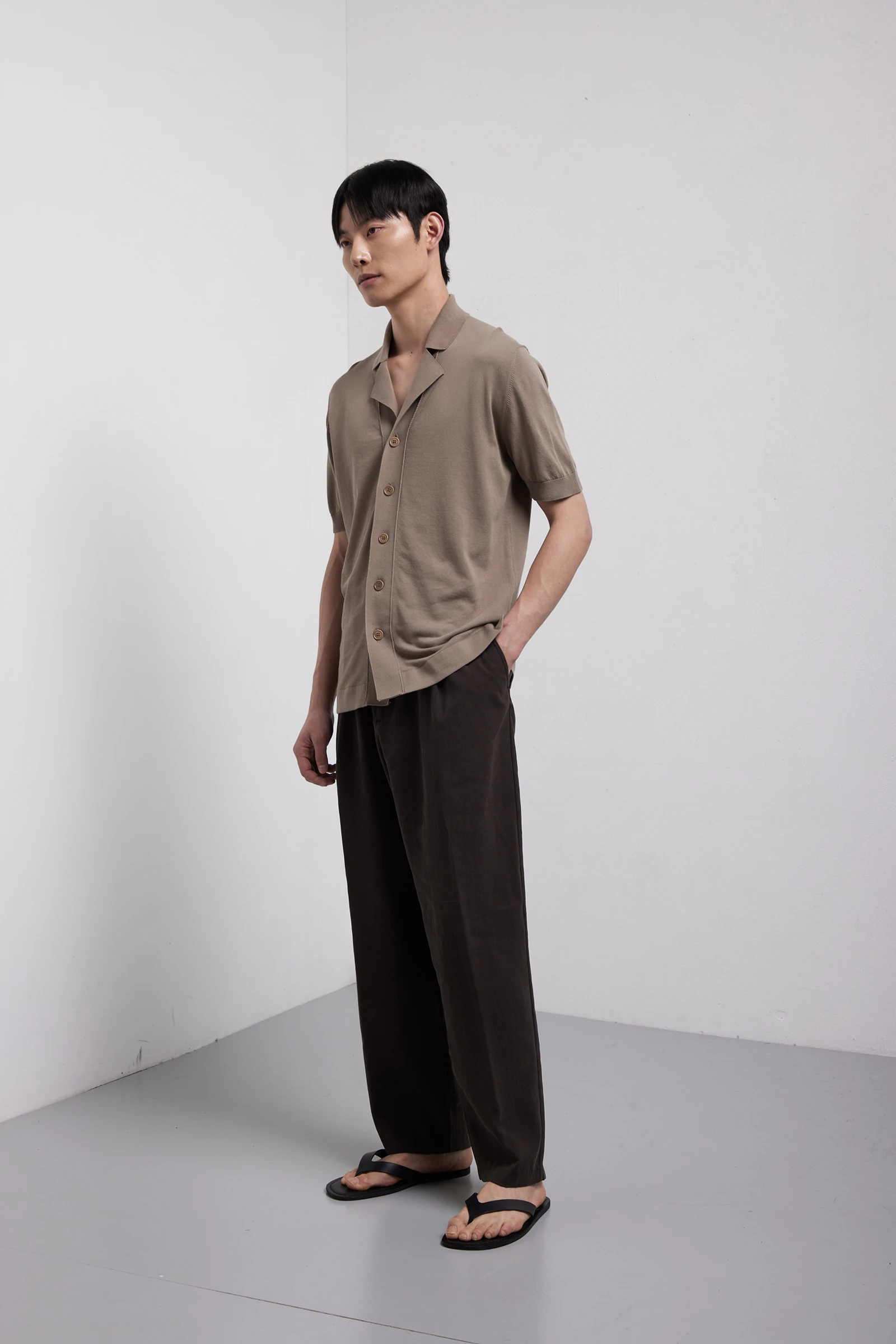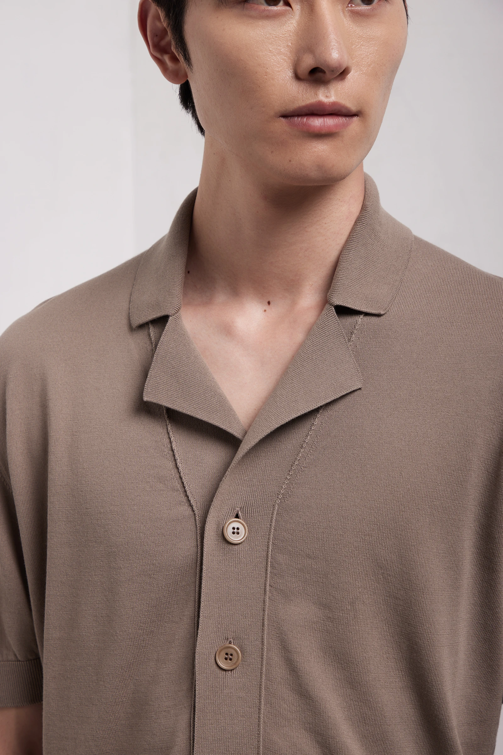 Camicia a manica corta in puro cotone, realizzata su finezza 14 per una struttura compatta e definita. Il collo con revers dona al capo uneleganza rilassata, reinterpretando la classica camicia in chiave maglieria.
