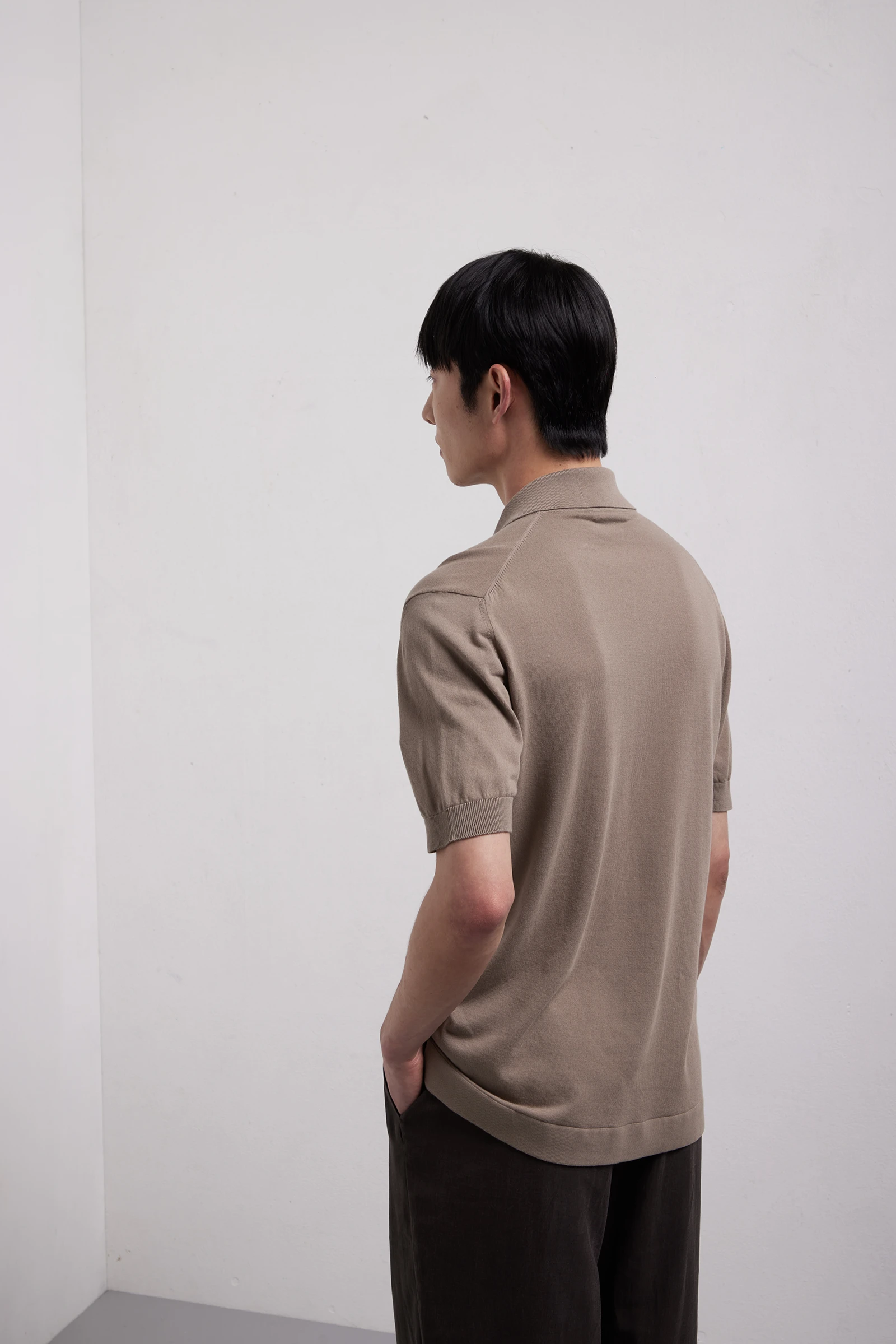 La costruzione in cotone garantisce freschezza e comfort, mentre le finiture a costina su maniche e fondo assicurano stabilità e precisione nella vestibilità. Un modello versatile, perfetto per la stagione estiva, da indossare sia come alternativa sofisticata alla polo sia sopra una t-shirt per un look più contemporaneo.