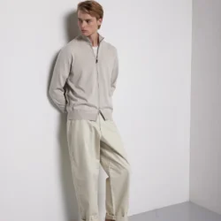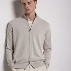 Giubbotto full-zip basico a manica lunga in puro cotone, realizzato su finezza 14 per una struttura leggermente più consistente e compatta. La lavorazione valorizza la naturalezza del filato, offrendo comfort, traspirabilità e una vestibilità equilibrata.