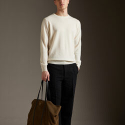 Girocollo basico rasato calato, realizzato su finezza 12 in puro Cashmere morbido ea avvolgente, vestibilità regolare, con fondo polsi e collo a costine