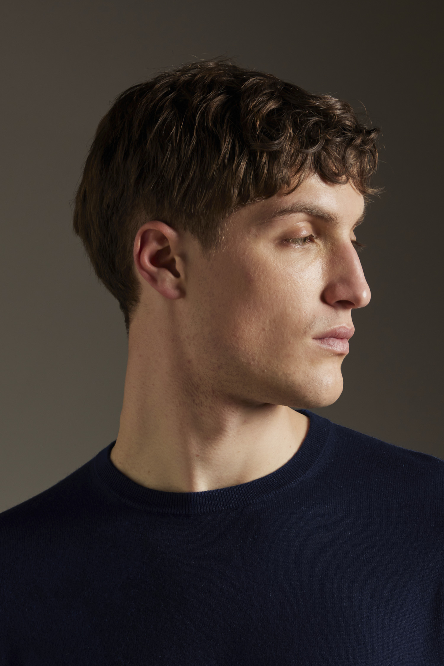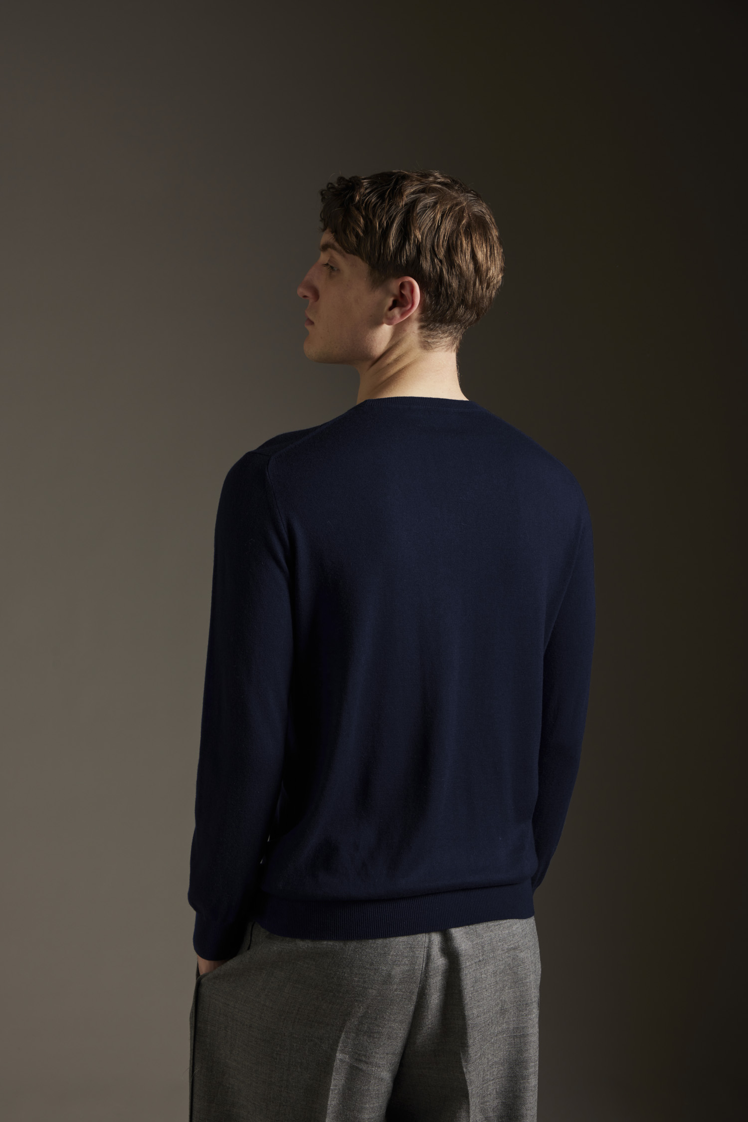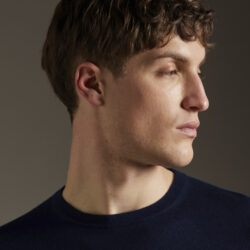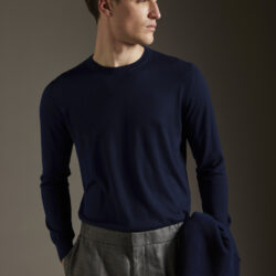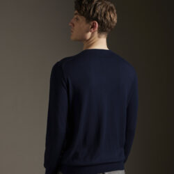 Girocollo basico rasato calato, realizzato su finezza 14 in misto Seta/Cashmere ultraleggero e dai colori brillanti, vestibilità regolare, con fondo polsi e collo a costine