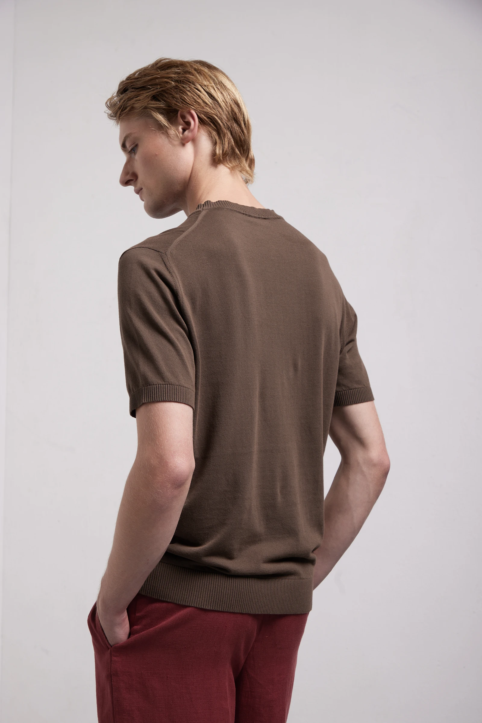 La mano rimane fresca e confortevole, mentre la costruzione definita garantisce una vestibilità stabile nel tempo. Un capo essenziale ma strutturato, pensato per chi ricerca semplicità con una lavorazione distintiva.