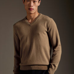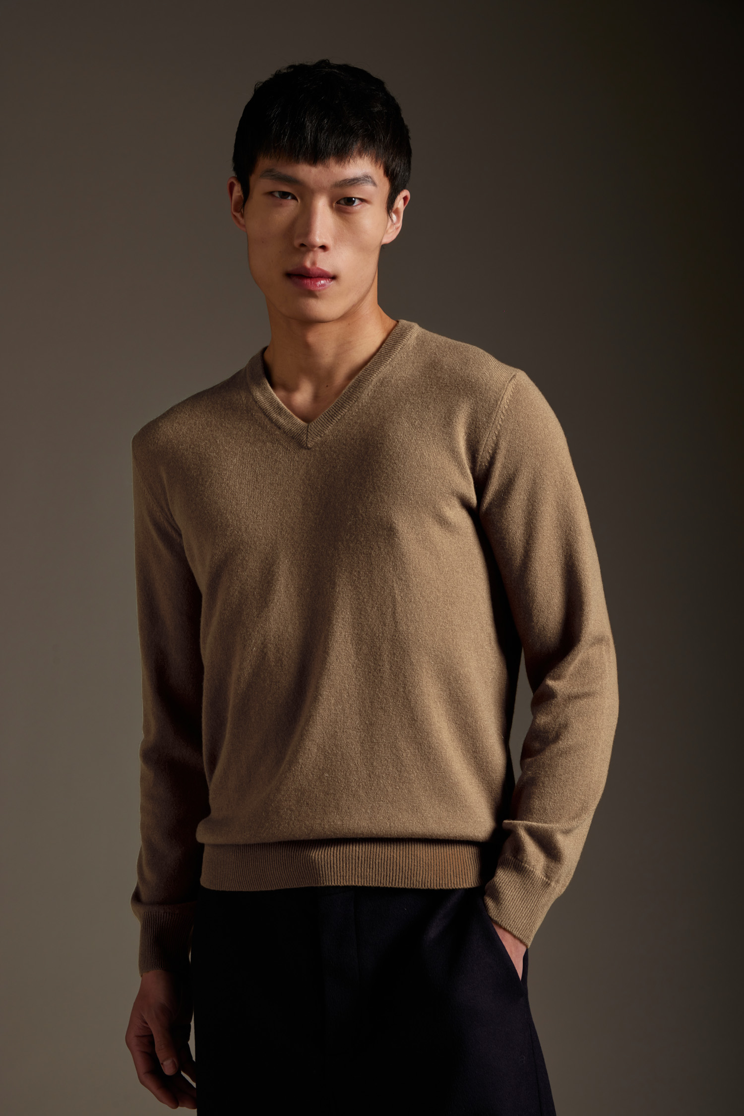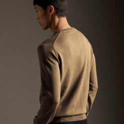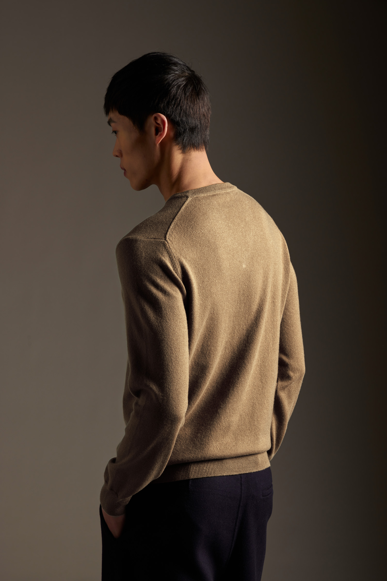 Pullover basico rasato calato, realizzato su finezza 12 in misto Lana/Cashmere, vestibilità regolare, con fondo polsi e collo a costine