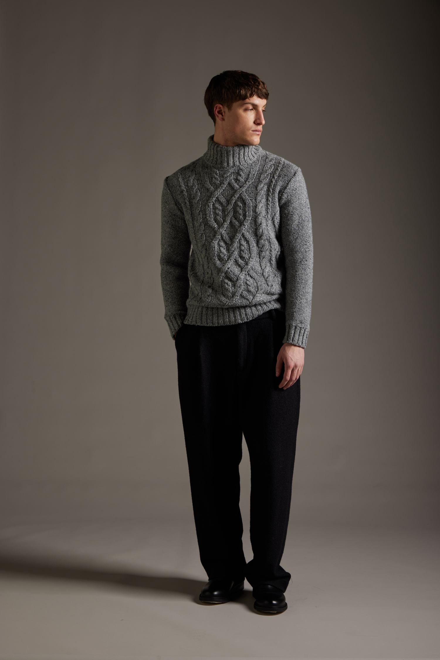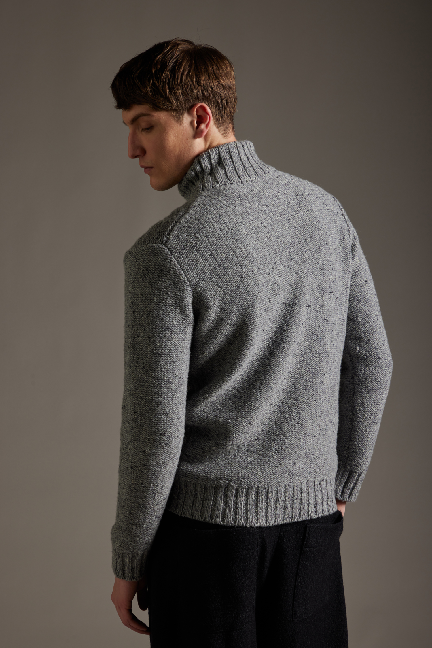 Maglione Collo Lupetto lavorazione norvegese, realizzato su finezza 3 a più fili in filato misto Lana con fantasia bottonata multicolor , vestibilità regolare, con fondo polsi e collo a costine