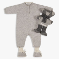 Tutina in puro cashmere, morbidissima e calda, pensata per avvolgere il neonato con la massima delicatezza. La fibra naturale del cashmere mantiene il bimbo al caldo, ma resta leggera e traspirante, ideale sia in casa che per le uscite. Apertura pratica per agevolare il cambio e finiture curate in ogni dettaglio. Un capo essenziale, dolce e prezioso, perfetto per accompagnare i primi mesi con comfort assoluto.