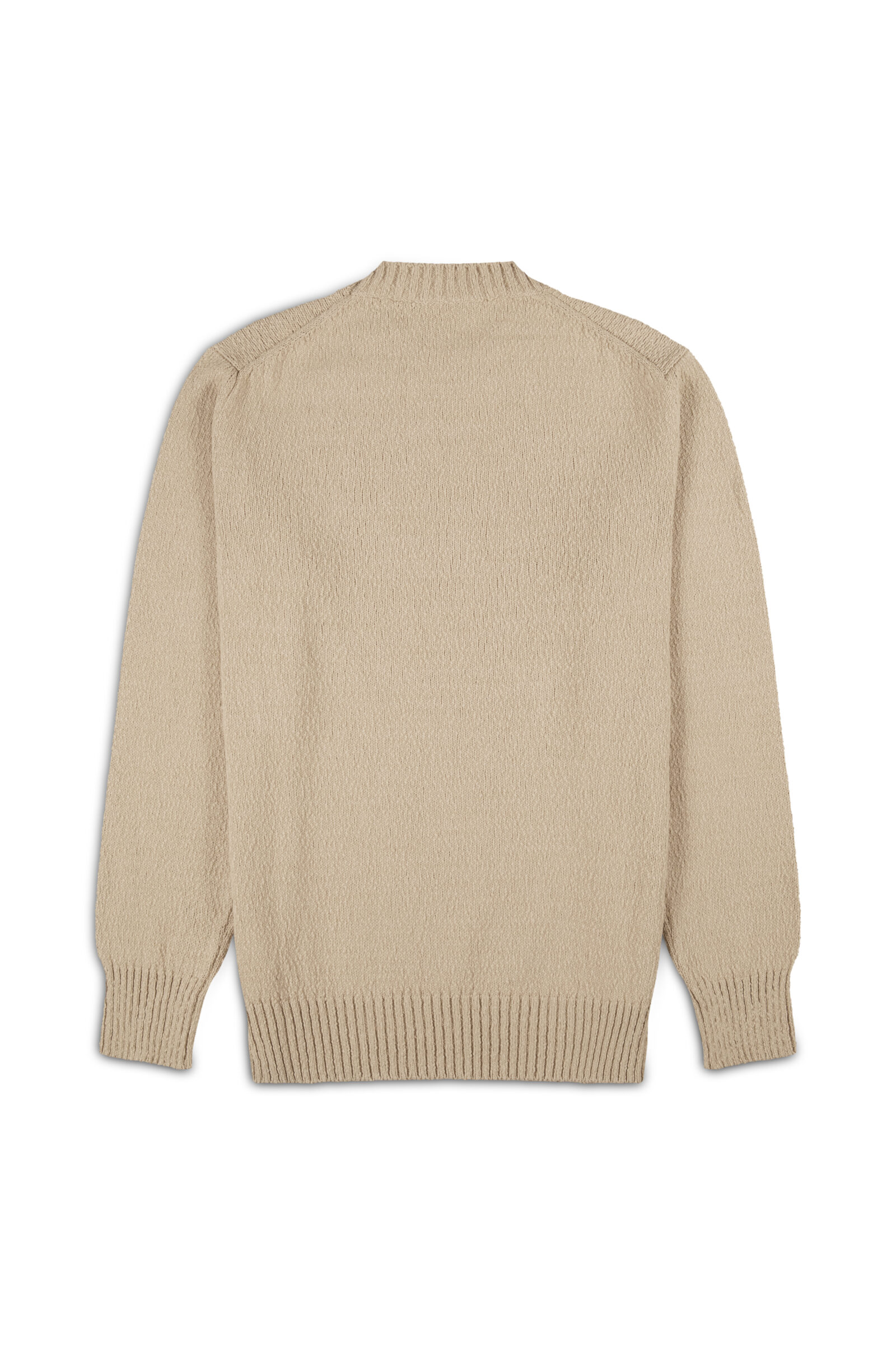 Crewneck sweater made from malfilé cotton, knitted in gauge 5 for a full, textured hand feel.