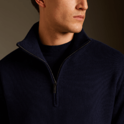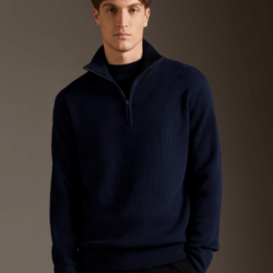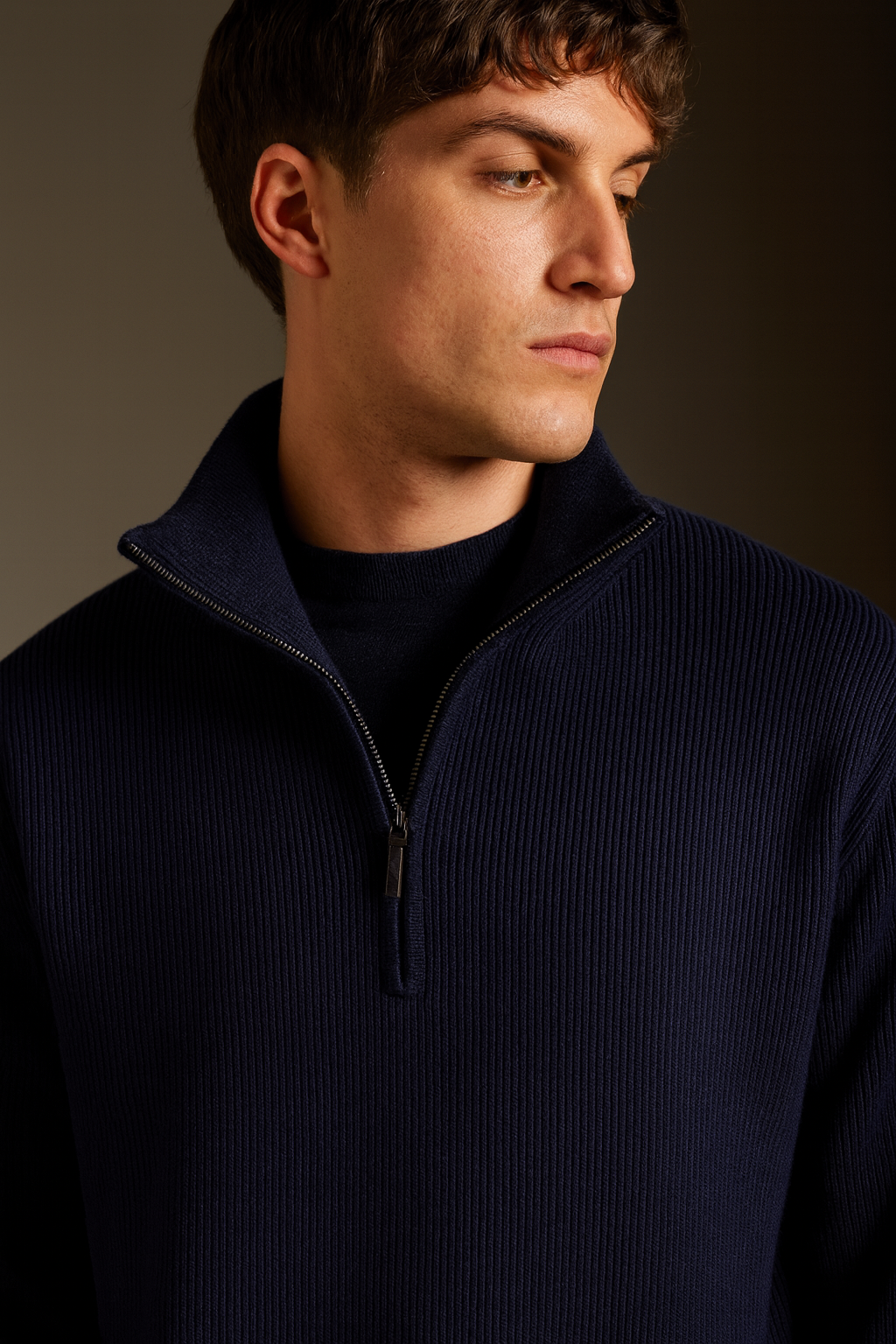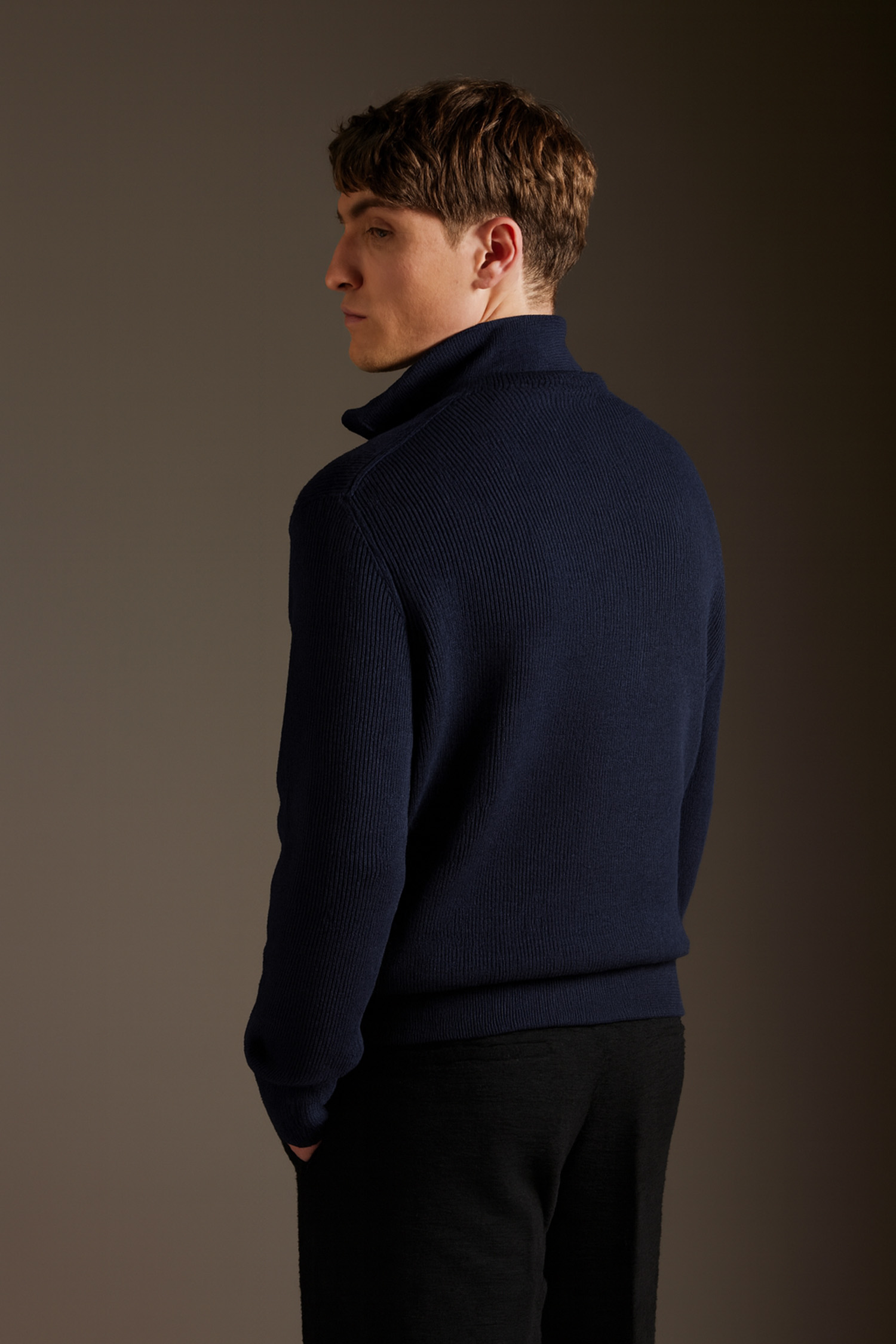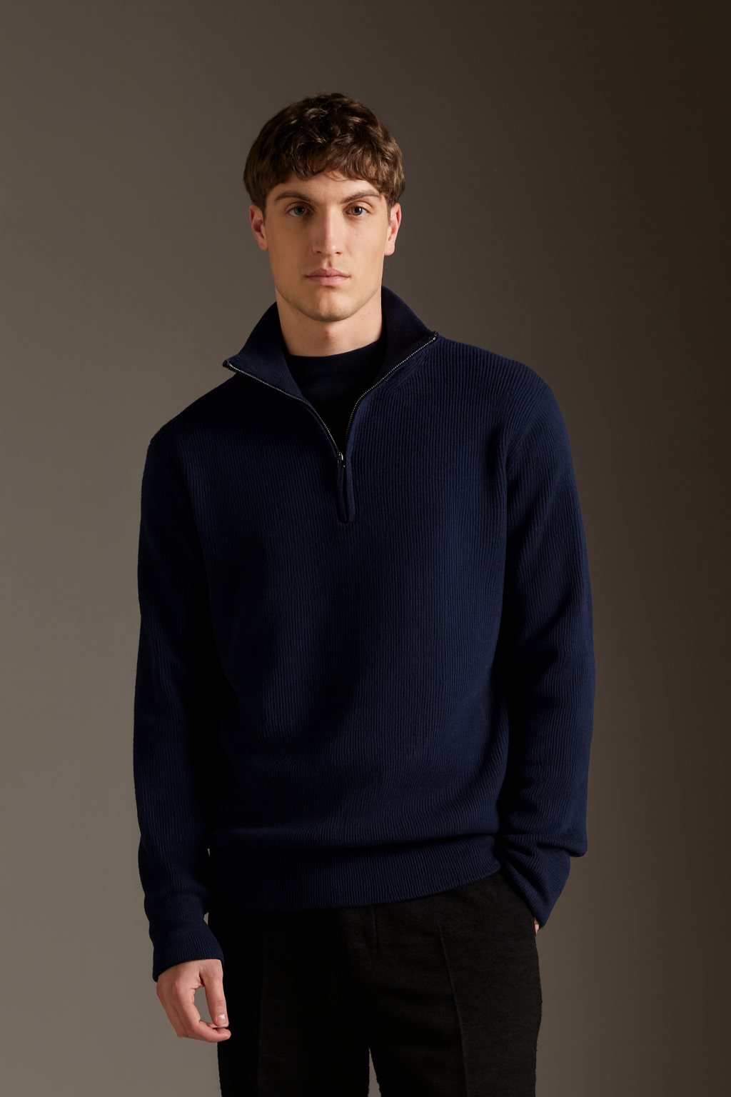 Maglia Punto Pannocchia collo serafino con zip in metallo in pura lana merinos.