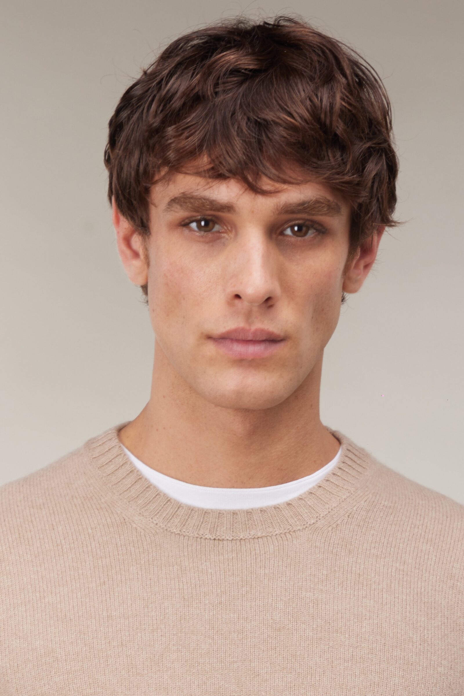 Maglia girocollo in puro cashmere realizzata in finezza 7 a due fili.